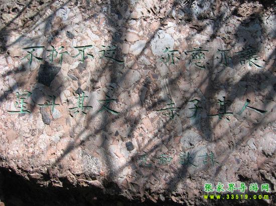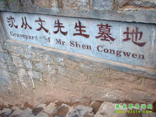 從古城的東門城樓外的虹橋前沿江下行3華里路程,到得聽濤山,從山道向右拾階而上,不遠處便能看見一塊石碑,上寫“沈從文墓地”5個遒勁大字。再不遠處置有一塊豎長的石碑,上面刻有畫家黃永玉為表叔沈從文題寫的碑文:“一個士兵不是戰(zhàn)死沙場,便是回到故鄉(xiāng)。”墓地建在一塊狹長的小草坪上,沒有墳冢,只樹有一塊6噸多重的天然五彩石,成為沈從文墓獨特的標志。石正面鐫刻的是沈從文富有哲學內(nèi)涵的手跡:“照我思索,能理解我;照我思索,可認識人。”石背面是沈從文的姨妹、美國耶魯大學教授張充和撰書,沈從文侄女婿、中央美術(shù)學院著名雕塑家劉煥素教授鐫刻的挽聯(lián):“不折不從,星斗其文;亦慈亦讓,赤子其人。”其聯(lián)句尾四字:“從文讓人”透射出先生一生的高風亮德。沈從文墓地清幽靜謐,四周綠樹環(huán)抱,墓地上和四周的草坪上擺放著無數(shù)的野花和竹編的一些蝴蝶,這些都是前來膜拜的旅人們留下的。