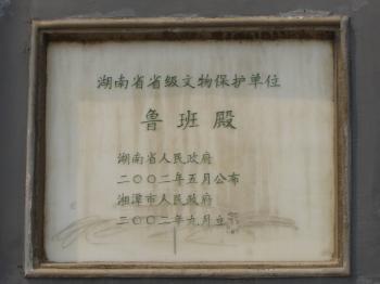 魯班殿位于湘潭市自治街。清乾隆初年由境內(nèi)泥木匠所建,作為公所。民國元年(1912)年燒毀,3年后重建。殿為全木結(jié)構(gòu),上下兩層,廟堂寬闊。門樓正面為八字墻,門額上方為泥塑浮雕《湘潭全城實(shí)貌圖》。