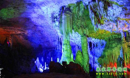 九天洞位于湖南張家界市桑植縣城17公里的利福塔鄉(xiāng),距市區(qū)70公里,距武陵源62公里,因洞內(nèi)有九個自然天窗九天洞而得名,總面積250公頃,是中國目前發(fā)現(xiàn)的溶洞之最,比號稱世界第一的利川溶洞大三倍。九天洞內(nèi)空氣清新,冬暖夏凉。整座洞穴分上、中、下三層,有五層不同高度的螺旋式觀景臺,最下層低于地表面400多米。經(jīng)初步探明洞內(nèi)有40個大廳、3條落差懸殊的陰河、12條瀑布、5座自生橋、10余座洞中山,此外,還有不可勝數(shù)的五光十色的鐘乳石群。在眾多迷人的景觀中尤以九星山、玉宮、水晶宮、九天玄女宮、壽星宮五大奇觀最為著名。
