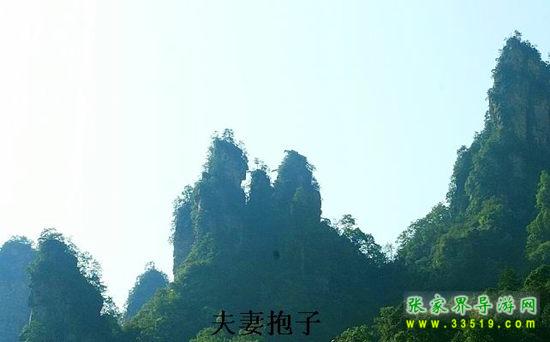 有三座石峰緊緊相連,就像一家三口緊緊的擁抱在一起,右邊的是爸爸,左邊的是媽媽,中間的是孩子,夫妻相向而對(duì),擁抱著心愛的孩子,一幅其樂融融的全家福。