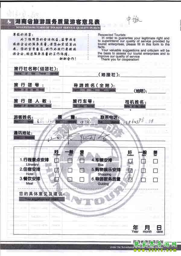 2010年10月3日山東王小姐一行2位旅游質(zhì)量反饋